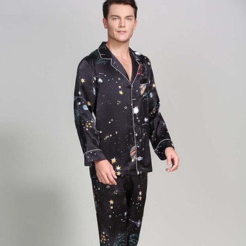 Celana piyama sutra asli lengan panjang cetak Digital kelas atas Set celana piyama sutra murbei kelas 6A Set celana piyama pria